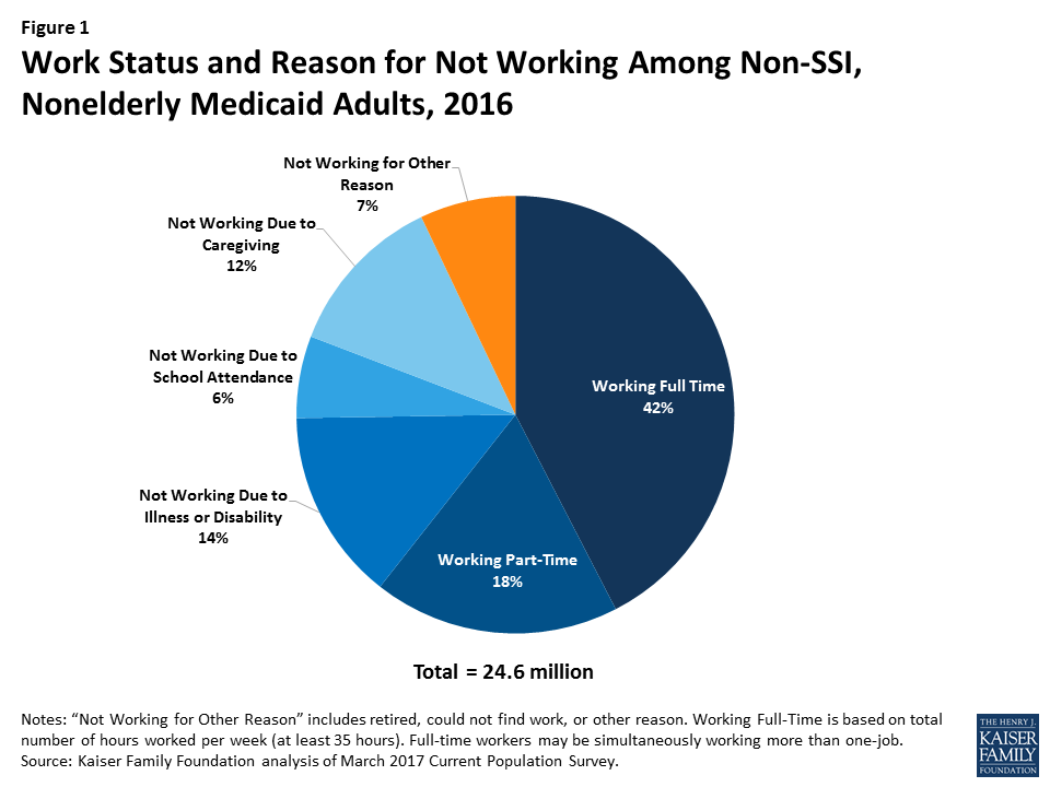 The week before last, the Centers for Medicare and Medicaid Services (CMS) issued a State Medicaid Director letter providing new guidance for Section 1115 waiver proposals that would impose work requirements (referred to as “community engagement”) in Medicaid as a condition of eligibility. This is a significant policy shift for Medicaid – but was not unexpected given a speech from CMS Director, Seema Verna, last fall. Kentucky’s waiver request for work requirements was approved, and nine other states have submitted waiver requests including some sort of work requirement for expansion or traditional Medicaid adults. However, most nonelderly Medicaid adults already are working or face significant barriers to work, leaving a very small share of adults to whom these policies are directed (see Figure 1 below). This week, the National Health Law Program (NHeLP), the Kentucky Equal Justice Center, and the Southern Poverty Law Center filed a lawsuit challenging the approved Medicaid waiver in Kentucky.