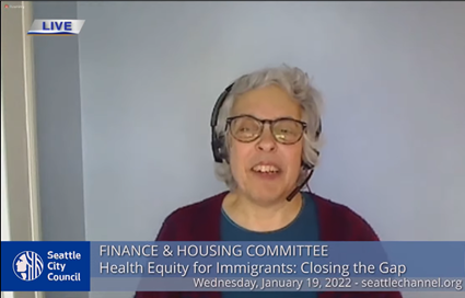 On January 19, Councilmember Teresa Mosqueda, chair of Seattle City Council’s Finance & Housing Committee, invited NoHLA to coordinate a panel to testify about closing the health coverage gap to achieve Health Equity for Immigrants.